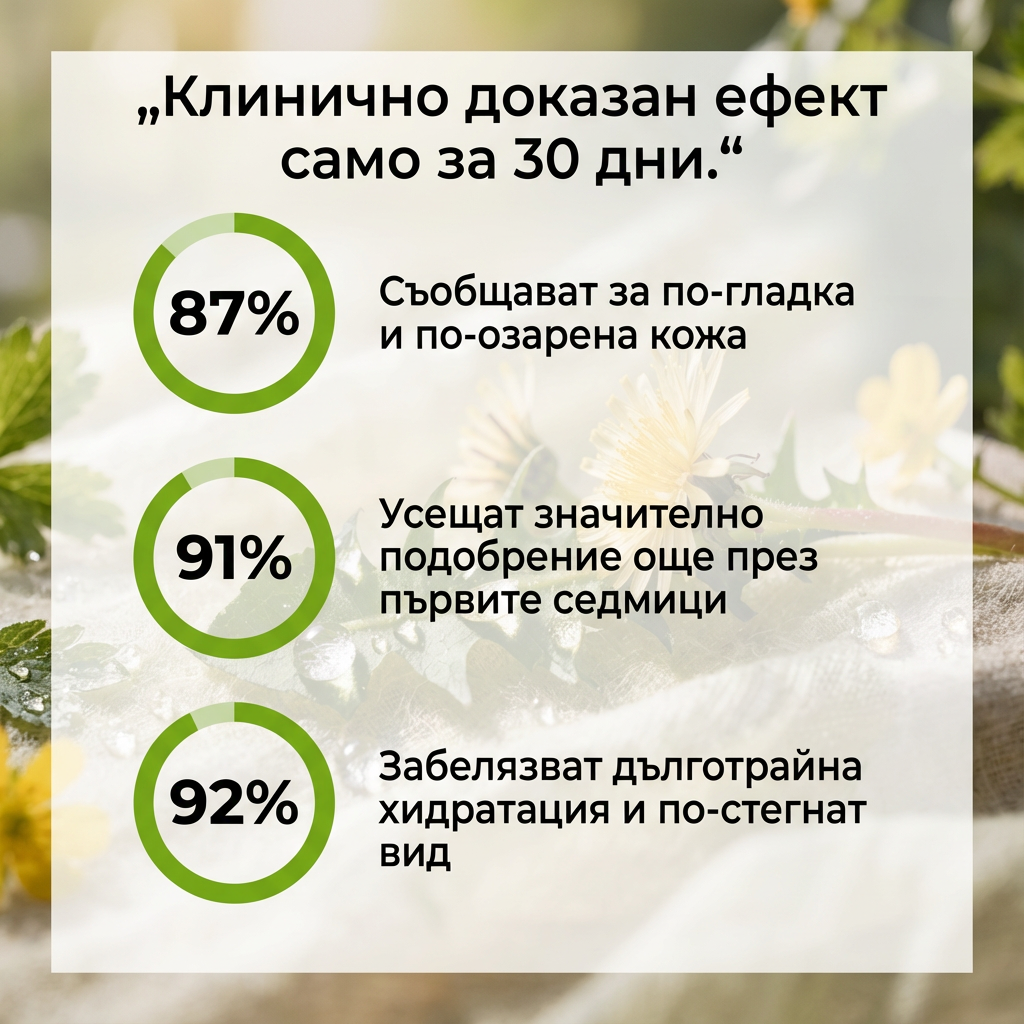 Лицето ми изглежда по-свежо и по-изпълнено! Използвам крема за бръчки и определено виждам разлика – кожата е по-стегната и хидратирана. Толкова съм доволна, че най-накрая имам продукт, който работи.